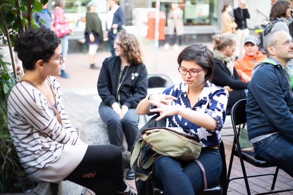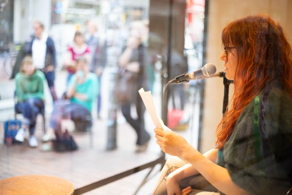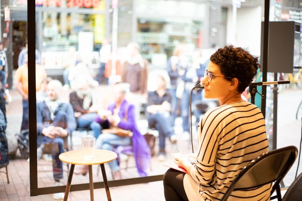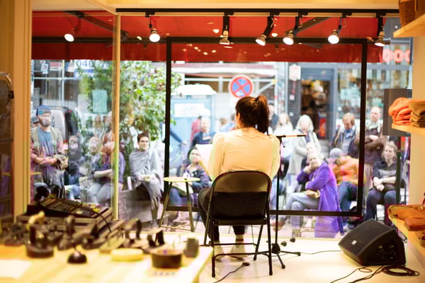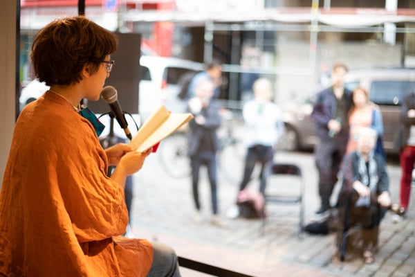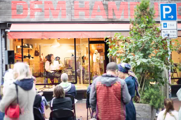 Window reading realised by Writers Room in cooperation with DFM Hamburg. They transformed the shop windows into analog screens of literature for one evening. With readings in German, English and Portuguese Alice Beyer, Adelaide Ivánova, Karen Köhler, Katerina Vasiliou. Moderation: Lubi Barre.