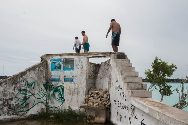 Still in the tail of Harvey we reached the Lagoon of Bacalar, a magical place where pirates use hide and to this day still lives on a time zone of its own. The place is so absurdly beautiful that it feels like being on another planet, especially in proximity of the cenote negro, a 130m deep underwater sinkhole.