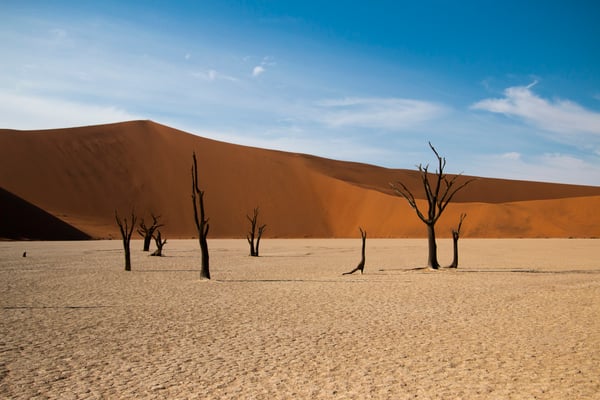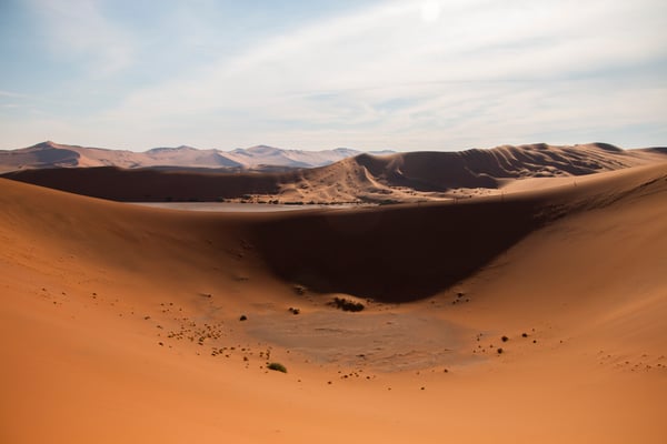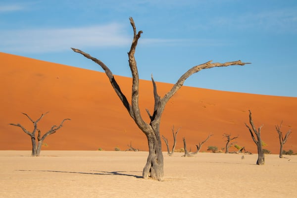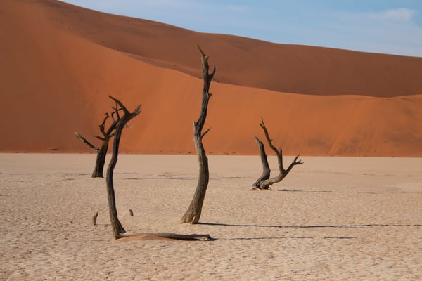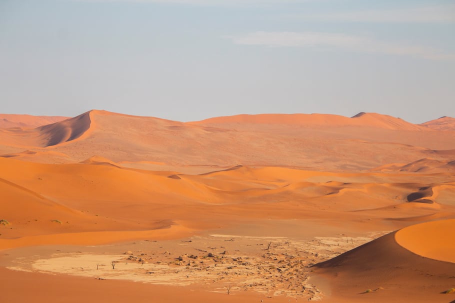 After the surreal peace of NamibRand, its wild animals and even wilder roads, the crowds and the paved roads of the Soussvlei/Deadvlei park were quite a change. Usually, I'm not a great fan of crowds and mass-hiking, but the Namib is so vast that even its most famous landmark dwarfs any amount of tourists. While walking up the Big Daddy dune, I could see many small, moving dots, going up and down the dune or exploring the Deadvlei pan below me. The view of other people in the distance didn't spoil the intensity of the experience. If anything, it highlighted once again the contrast between the greatness of the landscape, shaped over millions of years, and how small humanity is when observed from afar.
