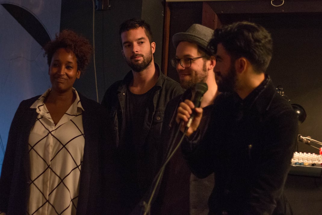 The texts read were in Danish, English, Georgian, Russian, Hungarian and German. As always, the reading included a vast array of tasty vegan delicatessen, finely handcrafted by the Kunterbuntess duo of vegan chefs." - Hafen Lesung
