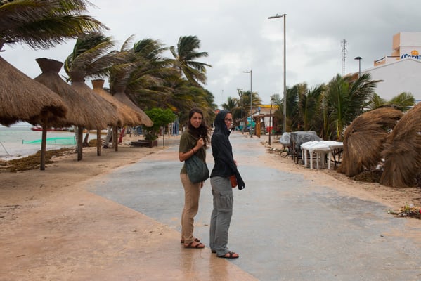 Visiting Mahahual takes a little bit of determination and some scheduling, but it's a detour worth making. Despite the recently built cruise port that vomits hordes of tourists at regular intervals (and swallows them back down), for now the village remains mellow, with plenty of Mexican tourists and Italian restaurant owners. When there isn't a hurricane on the way. In August 2007 hurricane Dean almost completely destroyed Mahahual with its 200km/h winds. We were much luckier. On the morning of our second day, on August 8, the camping staff told us about the hurricane alert and in the afternoon moved all the guests to a hotel nearby. When Harvey reached land, around 10pm, it didn't turn into a hurricane but remained a tropical storm. Still, I was glad I wasn't sleeping in a hut on the beach.