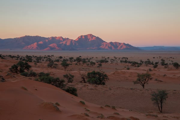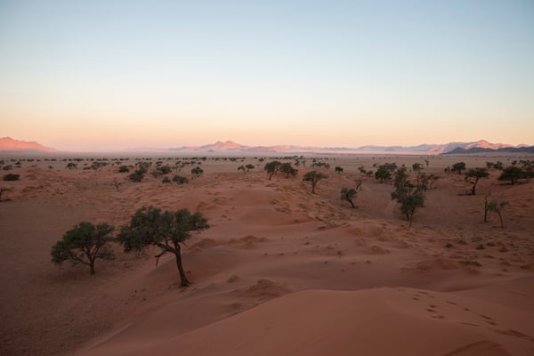 Between the Namib in the West and the Kalahari in the East, Namibia is almost entirely covered by desert. Windhoek lies in the Kalahari Basin and is surrounded by hills and paved roads. Our first destination was the NamibRand Nature Reserve, which lies deep in the southern Namib, and we soon took a turn into a gravel road, and later on a sand one. It took longer than we anticipated, but we had the chance to enjoy a spectacular sunset and watch dozens of oryxes feeding under the full moon. But it wasn't until the next day that we had the opportunity to explore the reserve and enjoy its wonders and solitude.